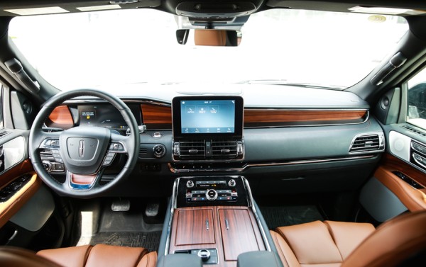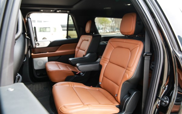 林肯领航员3.5TT 7座精雕细琢的内饰,结合了美国胡桃木和高级真皮材料、丝光镍饰件与白色发光二极管等组合一起,营造出一个豪华、浪漫而又极具现代感的车内环境。