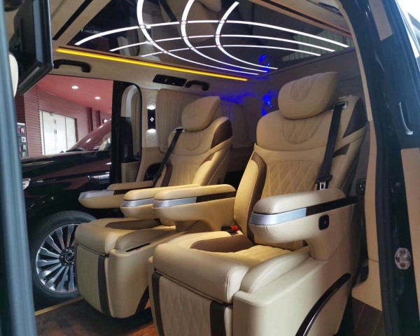 金属漆、电动调节后视镜、LED氛围灯、LED大灯总成、17铝轮毂、双开电动门、巡航定速、后掀式尾门、中央扶手箱、冰箱+UPS*2+220W电源、前舱座椅、前舱门板整体软包、前舱地板软包 、前舱大屏导航、中央储物箱软包、仪表台软包、豪华电动航空座椅 (通风,按摩,加热,360度旋转)、后舱电动三人沙发躺椅 (通风,加热)、后舱地板(南美柚木) 、后舱脚踏、迎宾踏板、九宫格顶棚套装、14。中仓两侧板软包、后尾门软包、后舱两侧板软包、中央扶手箱带冰箱、后窗帘、全车线速控制系统、多功能桃木方向盘、