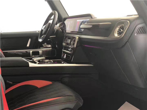 2019 款全新G63内饰方面,新G63保留了新G500的整体设计,除配色差异外,新车还换装了全新造型的平底式AMG动方向盘,其两侧配以打孔皮质包裹,下 部镀铬装饰的造型也与新G 500明显不同,看上去十分战斗。此外,全液晶仪表盘 中控大屏的双12.3英寸屏幕设计在新车上也没有缺席,营造出了浓郁的科技感。