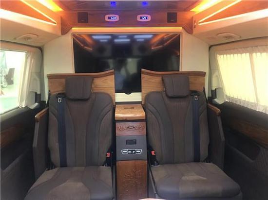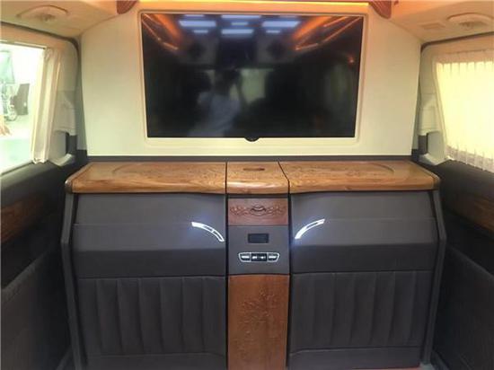 奔驰V260L这款车最值得说的是他的多功能娱乐系统,在驾驶舱的后方有32寸可升降高清液晶电视,音响设备则是来自日本的建伍5.1声道音响,还有后舱内的氛围灯都可以通过这个控制台进行调节,车舱内配置了空气净化器,随时保持车内空气新鲜,后舱如在客厅般舒适。隔断电视下方是多功能吧台一键式电动伸展开是两张隐藏式秘书座椅,配备有进口胶囊咖啡机与蓝光玻璃酒柜这一类生活性的应用,满足日常的商务休闲需求。