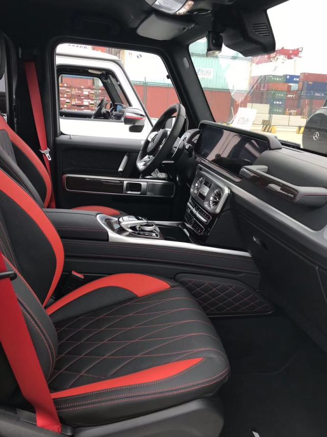 新款奔驰G63提供多种配色内饰,动型AMG座椅座椅上配有真皮打孔或钻石图案拼接的设计,同时在安全带、手刹以及方向盘等皮质接缝处还采用充满激情的红色缝线加以勾勒,让特别版车型的内饰氛围别具一格。19款奔驰G63配备了独立的前悬架,重新设计了悬架,在四个角增加了AMG专用的螺旋弹簧改善操控,还增加了一个支柱塔架以提高刚度,稳定杆减少车身横摇,自适应阻尼器和速度敏感转向系统,还配备了五种路面和三种越野驾驶模式。