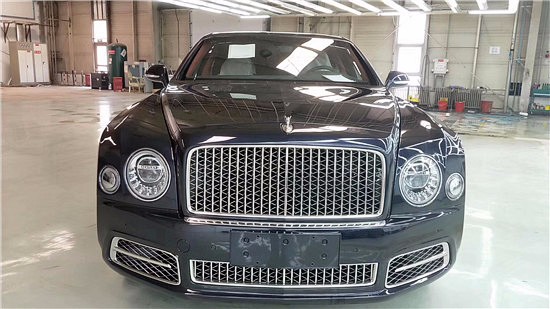2019款宾利慕尚加长版大灯仍然采用经典的双圆设计,但光源改为了全LED,为了保持车身的完整性,大灯清洗装置隐藏在中间。外观增加了许多碳纤维套件,并且动力系统也有了相应的升级,雾灯区、前唇、侧裙、后扰流板等部位增加了碳纤维套件,配合深色的车漆,是整车不经意间流露出一丝霸气。