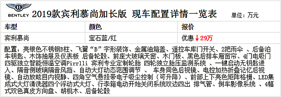 2019款宾利慕尚加长版外观设计透露出浓浓的英伦绅士味道,后保险杠有6颗泊车雷达,外还有前后摄像头加以辅助,行车相当安全。线条凸显动与力量感,略带溜背风格的车尾以及凸起的后备箱盖,融合了宾利经典的传统风格。车尾采用了和添越 (配置|询价)一样的尾灯,更具家族特色的“B”字形,辨识度极高。