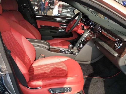 18款宾利慕尚加长版内饰体现了豪车应有的设计和工艺,更加年轻、时尚。内饰选用精美考究的天然材料,环绕座舱,T字型中控材料选择丰富,四幅方向盘在真皮的包裹下手感细腻。汽油表和机油温度表没有设计在仪表盘上,而是与时钟一起布置在中控台上,控制多媒体显示屏的旋钮设计在中控面板上,实用起来非常顺手,按键功能清晰,布局整齐。