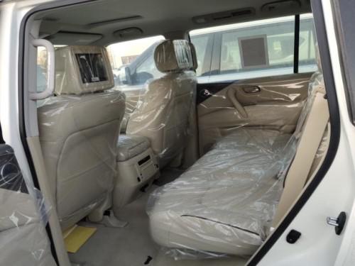 日产尼桑途乐Y62中东版4.0新车像很多SUV一样进行了明显的城市化改造,大大的提高了铺装路面的驾驶舒适性,有着更直接的城市化指向,平滑饱满。日产途乐给人留下的最深刻印象莫过于庞大的车身,车内在保留了这款SUV一贯硬派作风的基础上,在提升豪华性方面也做了很大努力。中东版途乐Y62的外形加入了很多饱满柔 和的元素,霸气的分段式前进气格栅与柔和的线条形成强烈的视觉碰撞感,双幅铝合金轮毂在静态时已经具有足够的“越野范儿”。
