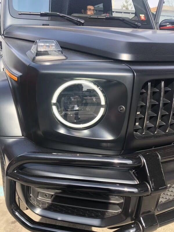 2019款全新奔驰G63 (配置|询价)整体延续了经典的方盒子造型,细节上则是略微调整,各种圆润的弧度也能体现出设计师在经典和中力图打造的亮点。前脸最大的变化当然是那双圆圆的大眼睛,大眼睛里面当然是换装了LED大灯。而进气格栅的三辐式镀铬采用了镂空的设计,保险杠也经过了重新的设计, 让大G的脸看上去更为粗矿, 这就是大G前脸的变化了。