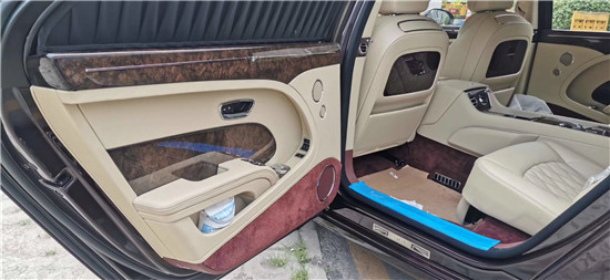 2019款宾利慕尚加长版后排才是他真正的卖点,两个“航空级”座椅放置平躺状态,腿部也不会受到挤压,中控台纵贯座舱,其手工制作的精美饰面巧妙地容纳了诸多存储功能,大大提升了后排乘客的舒适性,新增的隐藏小桌板也在中央通道内,包括后排车窗上的电动遮阳帘,不仅起到了防晒效果,也保证了车内的私密性。