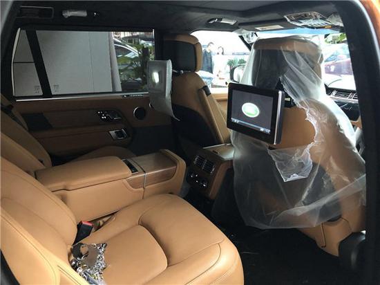 19款路虎创世加长 5.0 黑曜版,中控台高档木料搭配,卫星导航系统,上下两块DVD超大显示屏;方向盘上分布着快捷按键,与老款相比方向盘上的按键也改成了触控的形式、使驾驶者更舒适的操控,充斥着满满的科技感、路虎揽胜行政中控台更宽;更精致,按键少了一半,大多数基本控制功能在咫尺。由精美真皮和甄选实木装饰的表面干净优雅,散发出安详平静的感觉。新款路虎揽胜行政内饰一如既往的精致内敛,如同绅士。