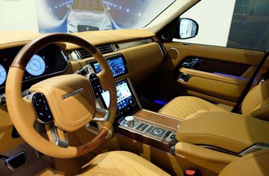 19款全新路虎揽胜 (配置|询价)行政创世加长版3.0柴油版外观详解:路虎揽胜行政版整体感觉如丝绸般顺滑。车身侧面线条简洁有力,新增L型LED日间行车灯,同时采用了新的铅等涉及和更大的雾灯底座,侧面贯穿全车腰线,倍显澎湃动力而不失沉稳气质。路虎揽胜行政版造型简洁、棱角分明充满霸气。长方形蜂窝状进气格栅是揽胜显得非常高贵。2018款揽胜全系标配交叉连接电子空气悬挂系统,可轻松应对各种车辆负荷并能与自适应动态系统配合工作。