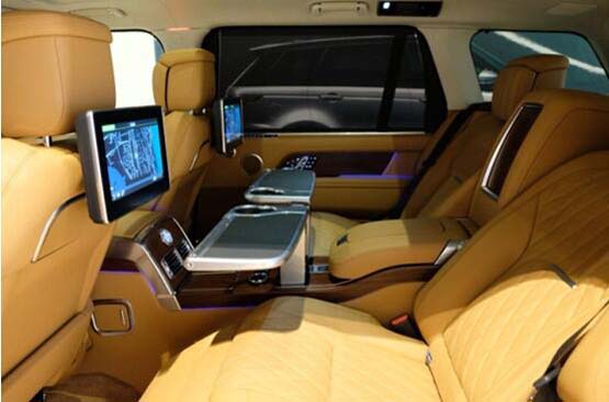 19款全新路虎揽胜行政创世加长版3.0柴油版内饰风格采用黄鹤色,大量真皮包裹,配合沉稳的造型很好的凸显豪华SUV的属性。2018款路虎揽胜行政版配有双液晶显示屏、无限多媒体控制器、825W音响等奢华配置应有尽有。采用四辐多功能方向盘,驾驶过程中能更好的操控,中控台两侧控制按钮改为触摸式,全新升级导航系统简洁易用。强大的娱乐系统和宽敞的空间,完全满足乘坐者对舒适的需求。