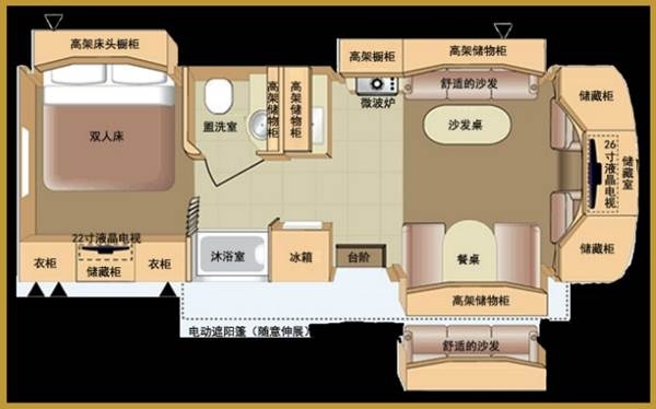 随着时代的发展,我们的精神需求也大了,房车,又称“车轮上的家”,兼具“房”与“车”两大功能,但其属性还是车,是一种可移动、具有居家必备的基本设施的车种。房车是由国外引进的时尚设施车种,其车上的居家设施有:卧具、炉具、冰箱、橱柜、沙发、餐桌椅、盥洗设施、空调、电视、音响等家具和电器,可分为驾驶区域、起居区域、卧室区域、卫生区域、厨房区域等,房车是集“衣、食、住、行”于一身,实现“生活中旅行,旅行中生活”的时尚产品。