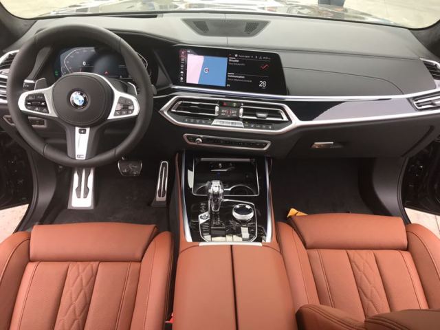 新款宝马X7方向盘造型与现款5系 (配置|询价)和7系 (配置|询价)如出一辙,哑光与白色缝线这两个设计元素让方向盘看起来典雅且低调。方向盘背后则是12.3英寸的全液晶仪表盘,虚拟时速/转速表打破了老款的物理圆环限制,提供了更好的观感。