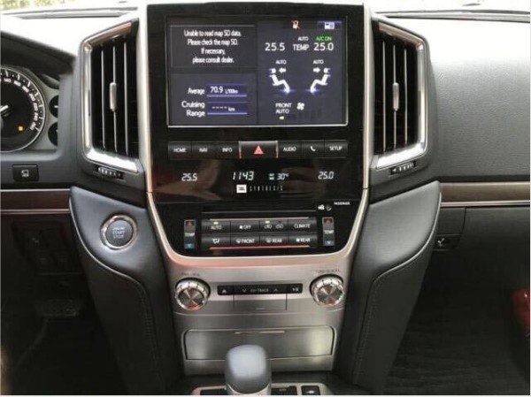2019款丰田酷路泽5700VXS中东版中控台换成了具有磨砂手感的金属板件,增强了内饰的质感。在仪表盘方面也并无变化,双炮筒式的结构加上红线元素酷劲十足,酷路泽5700信息量也十分清晰。
