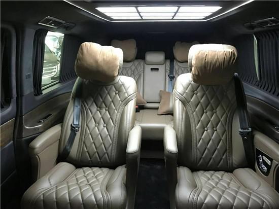 和普通奔驰v级 (配置|询价)、奔驰v260等系列房车对比,这款进口奔驰V250改装迈巴赫VST680版,内舱定位不再局限于“载客”之上,“乘客”和“乘坐”的传统意识通过新概念的应用设计,进一步提升了乘员自身体验的重要性,而非房车奔驰尊贵品位上的面子工程。后排2个进口迈巴赫62S首席航空座椅,引进先进的航空技术,大造更奢华的空间,记忆式电动座椅,通风加热按摩,一键式展开、恢复功能俱全,扶手处设有独立式触屏,全方位操控。