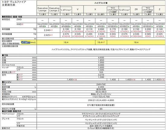 将区别总结到下表,可直观的看出,国内销售的2.5L威尔法双擎排量相当,但最大功率、最大扭矩、油箱容积,均小于日规版本。