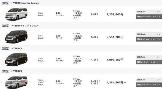 最后根据配置来对比下中日版本的价格。根据中规和日规车型的外观对比,我们找出了相似的日规矩车型的售价,可以看到,几乎同样是顶配的车型,在日最高售价为7352640日元,以目前的汇率来看大约45万人民币,当然这还是日规最贵的车型,普通版本车型的售价基本在400多万日元,合人民币也都不到30万。