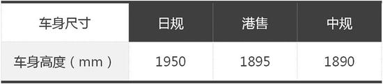 通过对比进口版、日售、港售威尔法的配置表可以看出,国内销售的威尔法双擎,在车身高度方面比日售和港售车型都要低。另外,港售车型为3.5V6版本,而国内消费者能享受到的车型仅有2.5L双擎。