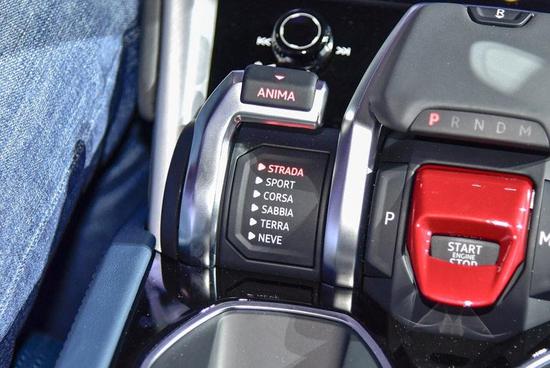 兰博基尼Tamburo驾驶动态选择器位于中控台,可对全车的动态系统进行控制,根据驾驶者偏好和路面状况切换驾驶动态:STRADA(道路)、SPORT(运动)和CORSA(赛道)模式,以及新增设的NEVE(雪地)模式。同时,可选装两种越野模式:TERRA (越野)和SABBIA(沙地)。