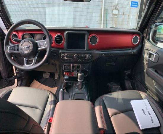 细节:2019款吉普牧马人2.0T车外后视镜的壳 体上设计了两排LED灯组,目的是为了弥补侧面的照明,视觉效果很有型,不知道实际照明效果如何。这是一辆吸取战斗机元素而设计的牧马人,发动机舱盖上的两个加特林机枪其实是进气口。全新一代牧马人内饰设计与外观相呼应,中控台线条平直有力,布局层次分明,中央嵌入8.4英寸全触控显示屏,两侧设有圆形空 调出风口。仪表采用双炮筒设计,中间加入7英寸液晶屏,科技感十足。车窗升降按键依旧设置在中控下方,向经典致敬。