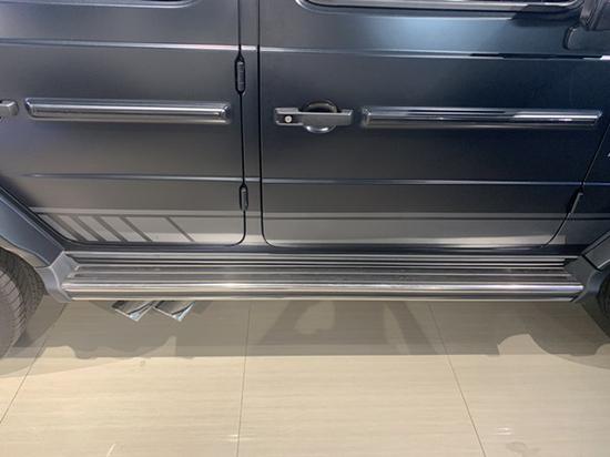 19款奔驰G63 AMG 它就像一个铁箱子,没有多余的弧度、没有任何曲线,眼光所及满是平直锋利的线条,就连车顶上的导雨沟槽,也是沿着车顶周围一圈,分外焊接上去的金属槽,车门搭钮更是绝不虚心,硬挺挺地屹立在门缝之外,外凸的轮拱、造型如同倒梯形的引擎盖。