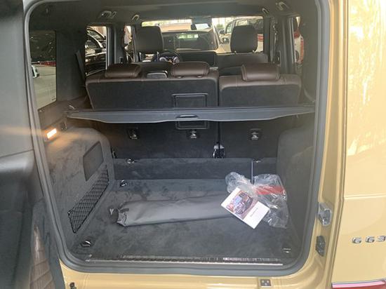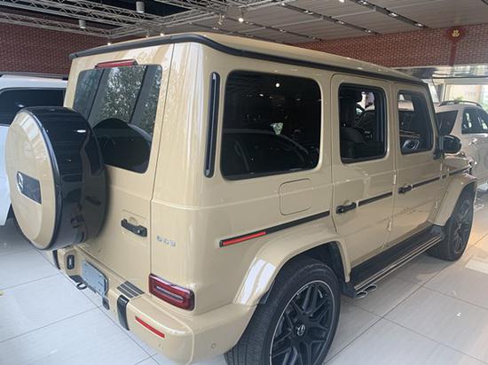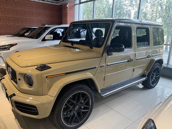 此款为19款奔驰G63 外观颜色为沙漠黄 配有 暗夜包,专属内饰增强包 ,designo金属漆,碳纤维内饰,碳纤维方向盘,22寸锻造熏黑轮毂。全国仅此一台