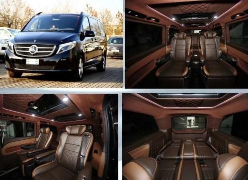 进口奔驰V250商务车各款式改装版,是根据中国人的审美标准、使用习惯、乘坐舒适度要求、用途多元化的需求,引进国外包围套件和欧洲Mastrotto进口皮、欧洲Alcantara进口面料,对车型外观和内饰进行全新设计开发及改装方案,全方位满足中国人商务、家用、旅行的豪华MPV定位。