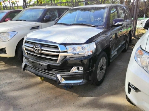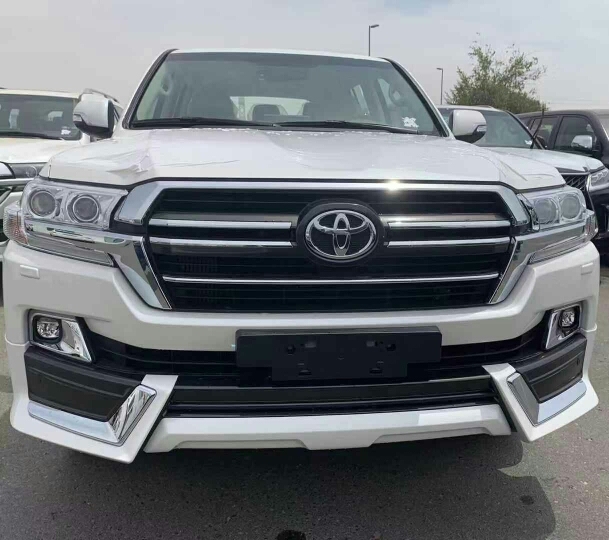 中东版酷路泽5700顶配的外观与其他配置的5700大有不同,外观带有前后大包围,前脸镀铬条中镶嵌流水灯,20寸的抛光轮毂,尾翼高位刹车灯,全车镀铬装饰,而且外观的前车标是镜面的,这就是ACC雷达测距系统也叫自适应巡航系统,尾部是VX.E标识,GRAND TOURING S这是限量版的象征。