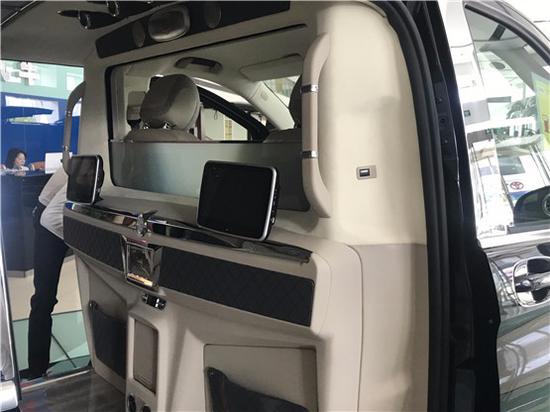 奔驰VS980采用隔断式吧台,,吧台中间镶嵌钟表,42寸雾化玻璃,隔断处后排娱乐,后舱独立空调系统,全车真皮包裹。整台车采用了前后无隔断的设计,隐私性稍差空间性更好,便于商务接待的同时兼顾家用,定制风格采用经典的迈巴赫元素,宽大的航空椅配上迈巴赫舒适头枕,坐在上面就想美美睡上一觉。无论出游还是商务会谈都十分凸显逼格儿