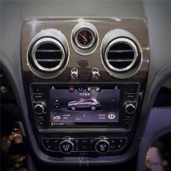20款宾利添越内饰采用常珍贵的木材和皮革打造奢华,纯手工缝制。方向盘由真皮包裹,手感极佳,“宾利动态驾驶”主动侧倾控制技术。在转弯时,这套系统可以通过反作用力来抵消横向侧倾力,确保最大的轮胎接地面积,实现优异的驾乘舒适性以及出色的操控性。最上方的这块石英表做工足够精致,传统钟表在车内出现更多的作用就是提升品位。