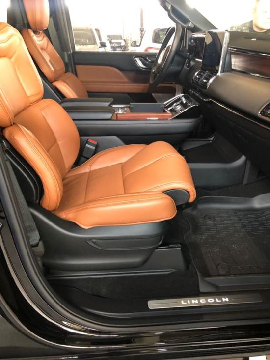 内饰尽显豪华,2018款全新林肯领航员的中控设计十分简洁,极为考究的做工搭配着整齐有序的中控布局,透露出一丝优雅和宁静。两块大尺寸液晶屏幕的加入也让全新领航员具备了这个时代不可或缺的科技感。方向盘的皮质柔软,手感细腻,各个按键设置合理且功能丰富,你可以很轻松的对多媒体音响、蓝牙电话等进行操作。林肯全新领航员配别的这块12英寸全液晶仪表盘,视觉效果绝对堪称一流,尤其当切换驾驶模式时,显示动画非常漂亮。