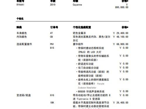2019款中规版保时捷卡宴 (配置|询价),指导价913000 国六版即将到店,华北地区最大的保时捷代理商,全国最低价格,全系接受预定,详细配置清单及颜色请咨询文章下方销售电话。