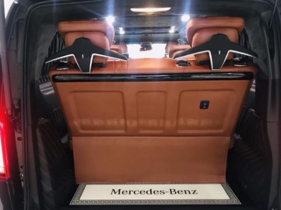 这款奔驰V250第二排座椅采用了奔驰授权专用座椅,支持28项电动调节,此款航空座椅(带360度旋转、通风加热、160度电动后仰)还配备了两个专用头枕,真正的头等舱般的感受。