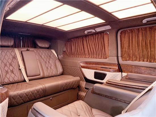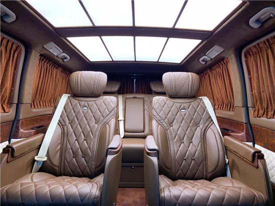 我们看到的这是一辆奔驰威霆迈巴赫VS680,车尾处有字样标识,这款车是奔驰威霆为基底的,整个车看起来就很高端有档次,相比美系车GMC大型房车德系奔驰V级 (配置|询价)(参数|图片)商务车看起来更为的精神年轻,镀铬饰条也少不了,LED的刹车灯清洗和漂亮,整个设计格式就很漂亮,后挡风玻璃还是维持这奔驰V(参数|图片)系列的原型,这样设计主要是考虑奔驰商务MPV的美观性。