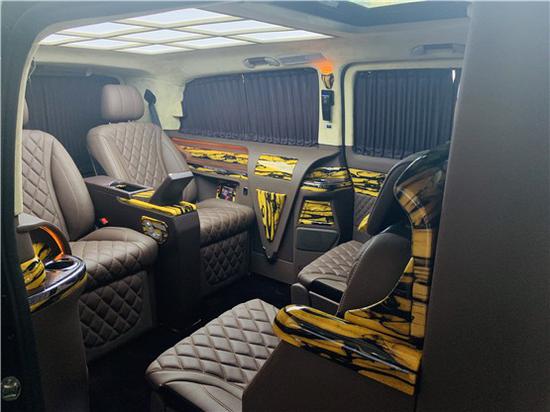 进口奔驰V级V250商务车改装商务车配有苹果Ipad娱乐、办公系统搭载苹果Ipad平板电脑及原装蓝牙键盘,并隐藏于小桌板内,满足出行时的商务及休闲需求,进口奔驰V级V250商务车商务车智能交互控制系统第三排触控/按键双模式智能交互系统:触控屏+实体按键双重控制方式,轻松实现与影音系统、照明系统、座椅功能、隐藏式车内装备、后舱遮阳帘及车窗等设备的交互智能语音控制系统,进口奔驰V级V250商务车通过语音控制车内各项功能,识别度高,听懂你的需求,全车IOS远程控制系统,搭载T-Acme手机客户端,奔驰威霆 (配置|询价)可在手机端实现对车内功能的便捷操作。