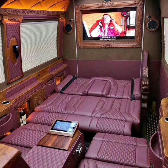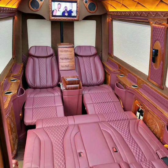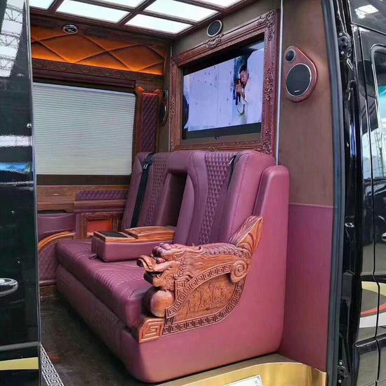 奔驰斯宾特红木总裁真皮包覆航空座椅舒适宽大有格调,可电动调节成床,劳累疲倦的时候坐着还是躺着,多种选择可缓解疲劳的不适感。且中控带有语音识别控制系统,十分有科技感且操作更便捷!真皮实座椅软硬适中,三排头等舱可享受真皮座椅通风加热,多档按摩,第二排可折叠打开变成一张双人大床,车舱玻璃均采用防紫外线隔热玻璃,夏天即便不开空调,也不会感到燥热。