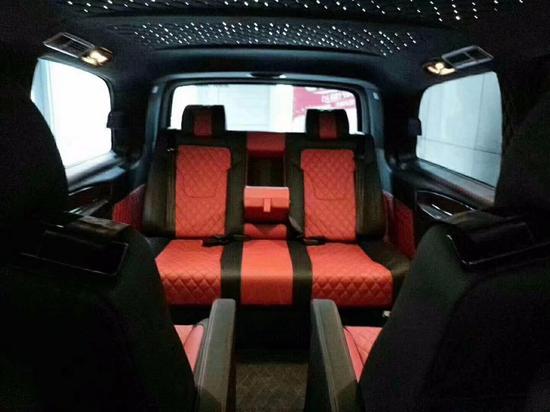 非凡的内饰展现在每一个细节,无隔断式设计让内部空间感更加宽阔。中央的首长席座椅多功多样,包括有多向电动调节、腿托、前后旋转等。车顶采用简洁化的设计,采用Alcantara包裹高档感十足。两张座椅皮质与填充物方面都以舒适为主。上面的缝线也相当细腻,首长席折叠电脑桌闪耀。