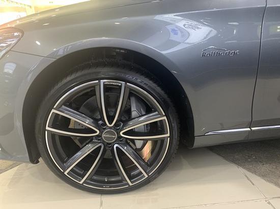 选装前保险杠格栅鲨鱼鳃,后保险杠扩散器,一套21英寸轮胎+轮毂(先进锻造科技),整车外部全套Rolfhartge微标替换MB logo微标。