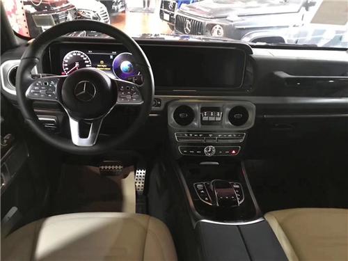 19款奔驰G550在车内应用了更多创新技术。奔驰G63 (配置|询价)AMG标配新式仪表盘和最先进的COMAND APS NTG 4.5驾驶室管理和数据系统。新的四辐方向盘也符合最新奔驰家族特征。配备后视摄像头,对于这样的大款头,倒车能够可视化,非常实用安全。奔驰G550具有强度极高的非承载式车身布局,底盘有好几道增强梁举行加固,前后整体桥式悬挂体系粗壮非常,奔驰G550绝对是最强健的民用车之一。