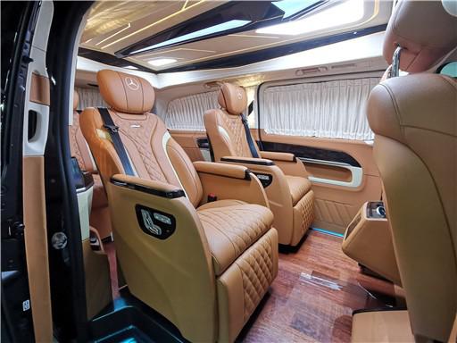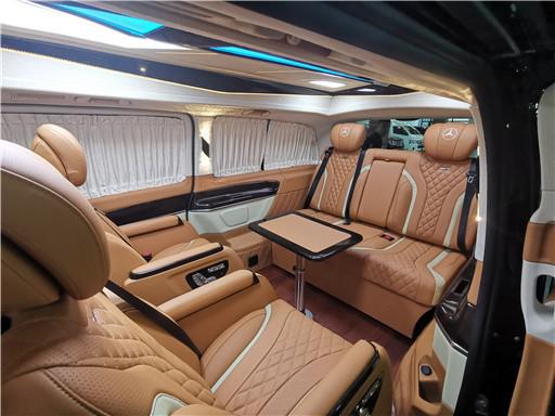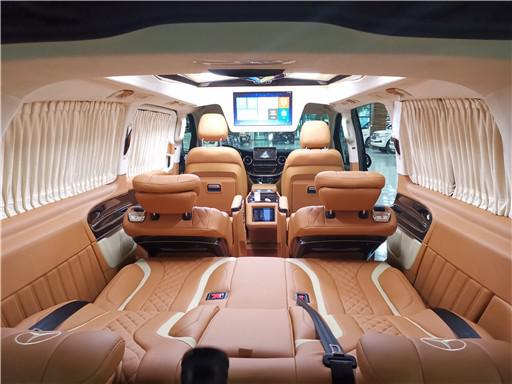 进入奔驰V260L7座改装后舱,立刻就会被它的豪华绚丽而征服,整车环保真皮包裹,游艇级柚木地板铺设,豪华感无处不在。全部采用真皮制作,豪华木饰装点,带有按摩加热通风功能。后舱前为两个独立航空座椅,第二排座椅安装进口首席航空座椅,加热通风按摩功能齐全,最大限度的减缓您的乘车疲惫。八向电动调节:电动头枕,电动腿托,前后电动调节,电动靠背调节。第三排为一组沙发座椅(可电动展平,形成一张舒适的沙发床)。