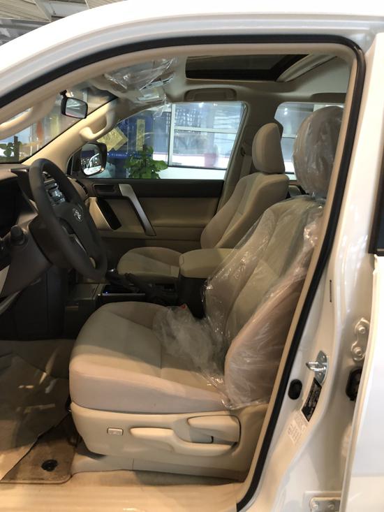 2019款中东版霸道2700外挂天窗丐 TX配置:2气囊,外挂备胎,150升大油箱,天窗,7座,手动座椅,卤素大灯带清洗,冰箱,小屏,丝绒座椅,多功能方向盘,手动空调,黑色后视镜,黑色门把手,17铁轮,彩条。