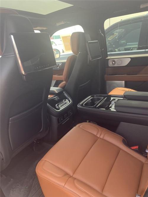 19款林肯领航员的内饰非常奢华,多功能方向盘,中控台的造型与宽大的车身相呼应,新车全部真皮包裹座椅,内饰采用桃木搭配设计,高贵典雅,加高加大的车身除了增加内部空间外,还给人营造一种尊贵典雅的感觉。最新林肯领航员新车采用了2+2+3的座椅布局,第二排采用了两个独立座椅,座椅内侧均配有扶手,舒适度超强。