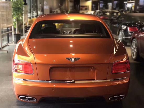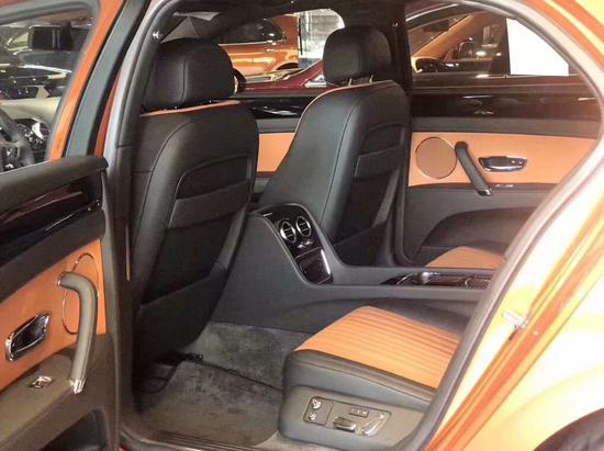 19款宾利飞驰V8S尾部,这款车依旧采用的是方形的尾灯,与前脸格栅的造型相呼应,复古韵味十足,配合上车尾分流器以及与车身同色的保险杠,视觉效果上更显低矮和沉稳。此外,这款车还选装了倒车影像功能,并配备了电尾门,它这个电尾门的开启方式很特别,开关在宾利尾标的这个“B”形标志上,既新颖又不影响美观。