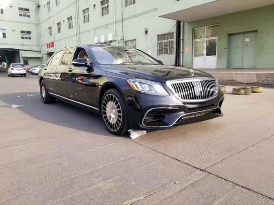外观配置-迈巴赫前中网、迈巴赫前杠、迈巴赫20寸铝合金轮毂、漆面金色腰线、车窗镀铬件喷黑