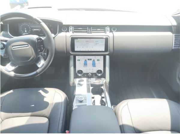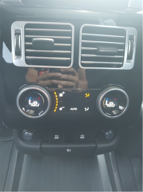 19款路虎揽胜行政版3.0汽油HSE黑耀版中控台的变化显而易见,真皮包裹的中控台搭配暗影核桃木,着实让人眼前一亮,浅色半苯胺真皮的出现更是使其提升了一个档次,相较于单一的黑色皮质,这种颜色更为吸引眼球。分别为10英寸和10.2英寸的上下两块触摸屏进行无缝连接,大大减少了物理按钮的存在,触摸屏里集成了众多功能,越野模式的选择、空调、音频、蓝牙、氛围灯等一系列操作都在这两块屏幕里,以简易的设计造就不平凡的工艺。