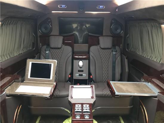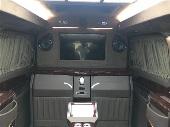 奔驰V250改装房车车内隔断墙上配置英国Oliver Hemming精致极简钟表,再往上看,32寸液晶电视醒目的安静的蹲在那里,电视下方是隐藏座椅式吧台,伸张开是两张秘书座椅,日本健伍音响就围绕在它的身侧,设计者是想让拥有者得到更好的视听效果。进口奔驰V级V250商务车改装六座进口奔驰V级V250商务车钻版,第二排则为隐藏式座椅,可根据用车需求一键开合,收起时就会变成豪华吧台,科技感十足!两个奔驰GLS (配置|询价)450的秘书座椅座椅,可电动语音识别进行收回,展开。第二排座椅可在吧台和座椅之间随意转换,可充分释放后舱空间也可以拓展多人出行乘坐人数,带来客厅级舒适享受。