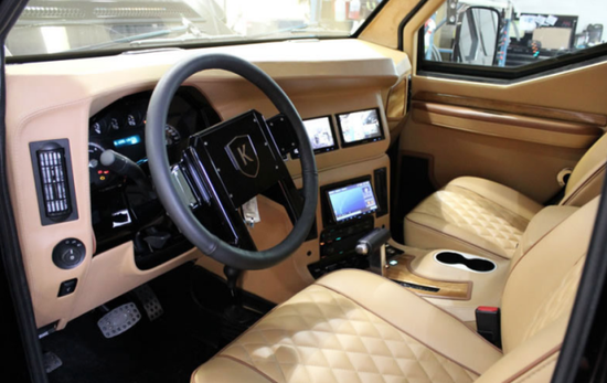 骑士十五世仪表台由两个中间两个电子屏幕可以控制多媒体、导航以及车载影像系统,这套影像系统分别有安装在车前后两个热成像摄像机和普通摄像机提 供信息源。因为在车门上安装了透明和不透明装甲,为了支持其重量,车门的铰链均实用专利技术进行加固,预防铰链周围的金属出现金属疲劳现象。车的内饰也绝对对得起他的售价。威尔顿羊绒地毯、Andrew Muirhead皮革制品、6向可调电动座椅、遮阳玻璃、置于侧面的笔记本电脑托盘、LED发光显示仪表盘、AlpineDVD导航和蓝牙端口,即以方便驾驶的夜视仪和车尾摄像系统。至于车内娱乐系统,黑色奢侈的形象也只有PS3和他最配。