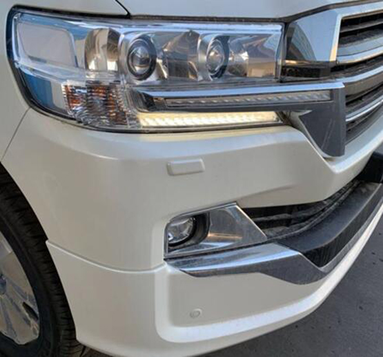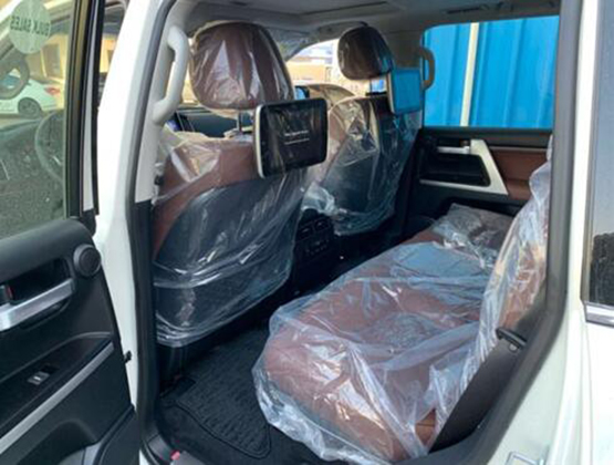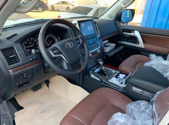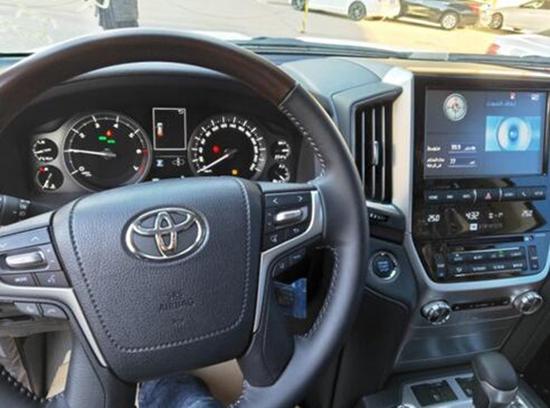 19款中东兰德酷路泽5700外观带有前后大包围,前脸镀铬条中镶嵌流水灯,20寸的抛光轮毂,尾翼高位刹车灯,全车镀铬装饰,而且外观的前车标是镜面的,这就是ACC雷达测距系统也叫自适应巡航系统,尾部是VXR标识,这是顶配的象征。酷路泽5700车内看着更明亮、同时也更显豪华,更符合中国消费者对“豪华”的定义。