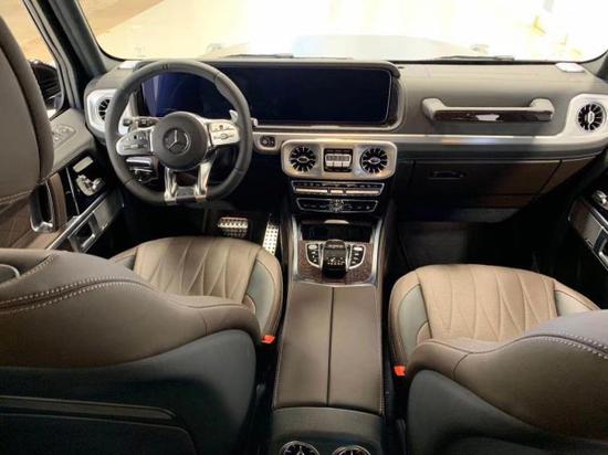 它的内饰部分,其实我看到后是感到非常惊讶的。作为一款硬派越野车,没想到它的内饰会这么豪华。AMG性能方向盘采用纳帕真皮包裹,大量的AMG碳纤维装饰,让它的内部看起来很有质感,而且更加的轻量化。中控和仪表采用联屏设计,非常的具有科技范,档次感十足。空调出风口的造型也经过了调整,看起来更具时尚感与个性感。经典的“三把锁”按键则设置在中控台最为显眼的位置。