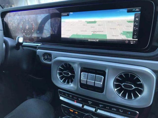 新一代G级使用了奔驰品最新的家族式设计元素,包括仪表盘、中控显示屏、空调控制区、COMAND操作区和带有双拇指控制(Dual Thumb Controls)的三辐式方向盘等。中控台上的“3把锁”、副驾驶前方的扶手等G级经典的设计元素在新车上均得到保留。中控台功能按键盘设计比较紧密,但是做工精细。中控台配置COMAND信息娱乐系统和一个8英寸大尺寸液晶显示屏。