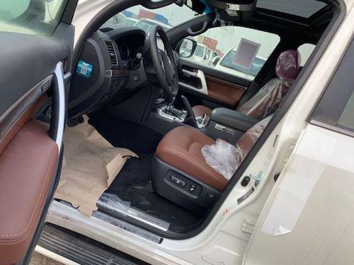 19款陆巡5700VXR GT S 颜色:白棕 配置:12气囊,底挂,天窗,JBL音响,新款GT前后包围,7座真皮座椅,环车影像,雷达测距+自适应巡航,底盘升降,氙灯 (流水灯),自动大灯,大灯清洗,雾灯带镀铬罩,新款中网,转向边灯带镀铬条,镀铬门把手,门边防擦条,航踏,20轮,胎压监测,后四电眼,新款行李架,拖钩,智能卡一键式启动,主副驾电动座椅,主驾驶记忆座椅,前排座椅通风,后排娱乐,桃木内饰,多功能方向盘电动调节,大屏导航,倒影,中差速锁,多路况低速蠕行模式,电动折叠后视镜,电动后尾门,道路偏移警告,碰撞预警,盲点检测,动模式,防炫目后视镜,四区空调,冰箱,遥启,四门迎宾灯,尾翼带灯,金属漆,无线充电
